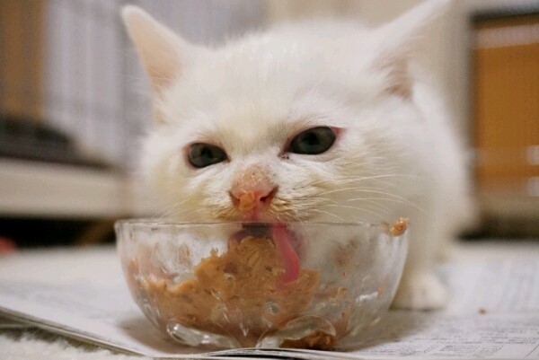 とにかく食欲旺盛な仔猫時代 鼻にご飯がついてもお構いなしで夢中で食べていました