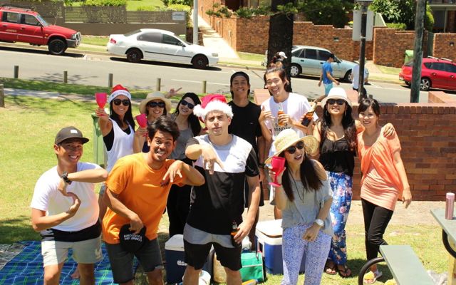 普段は日本食レストランで働くTクン。そして下の写真は職場のクリスマスパーティーでの1枚コマ。皆さんもご存知の通り、オーストラリアは南半球なので、