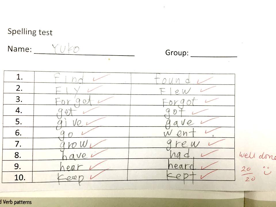 また、ほぼ毎日のように小テストがあり、毎日勉強する習慣が身につきました。小テストは、中学生の頃に英語の勉強をしていた人なら改めて勉強しなくてもできる簡単な過去形のテスト。
