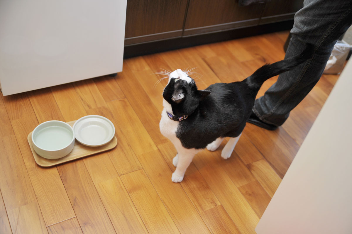 ごはんのときはだいたいこんな感じで ぴたりと寄り添って待ってます