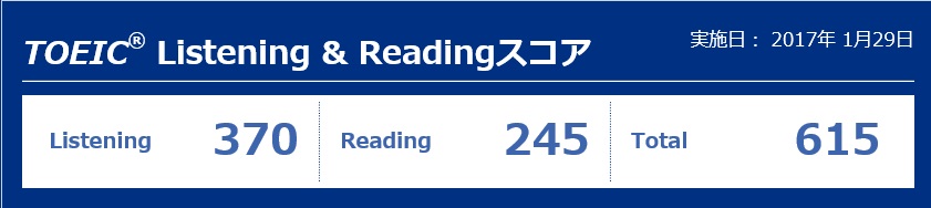 ▶1月29日TOEIC受験結果 615点