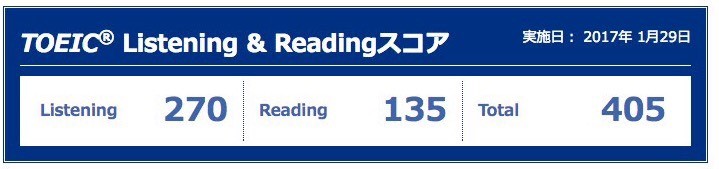▶1月29日TOEIC受験結果 405点