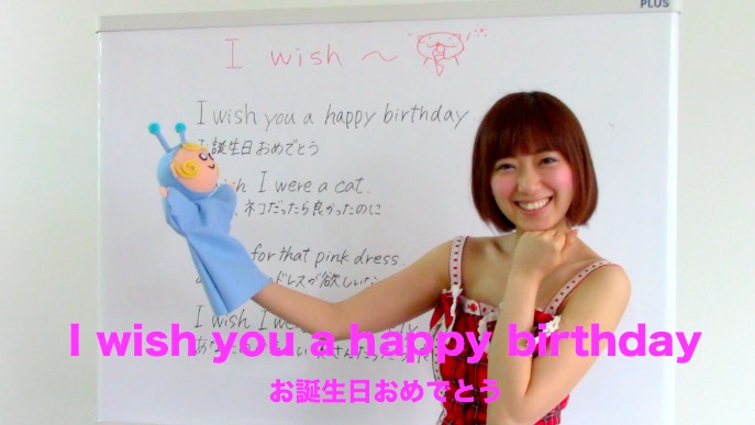現役アイドルで進学塾の塾長でもあるエイミー塾長こと池松あいみが、基礎英語を使った恋愛英会話を動画でご紹介している「アイドル塾長エイミーの大人の恋愛英会話」。今回は”I wish~?♡”の使い方を、エイミー塾長がCheer up! English公式キャラクターのあっぷくんとともに、紹介していきまーす♪ あっぷくんとの寸劇もお見逃しなく~♪