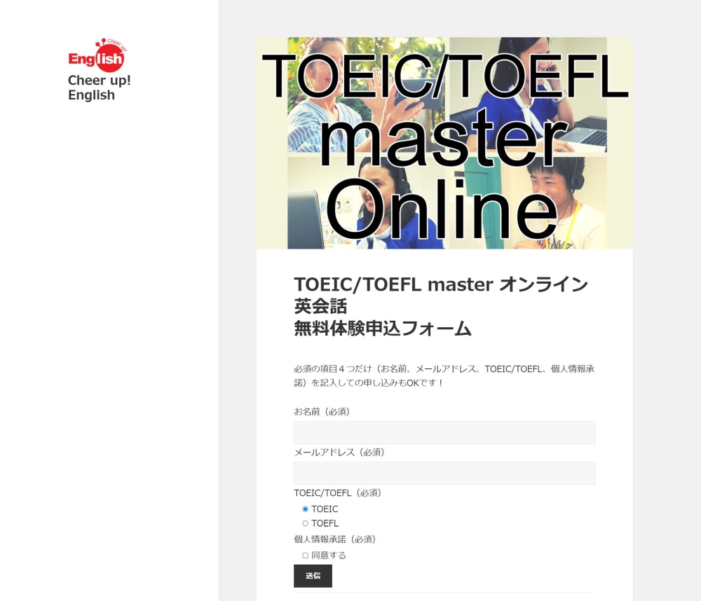 無料体験申込フォームから「名前・メールアドレス・TOEIC/ TOEFL・個人情報承諾」の項目を入力して送信するだけ。後日、日本人担当者からメールで連絡があります。