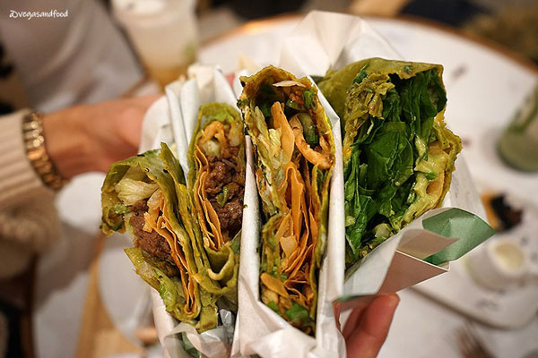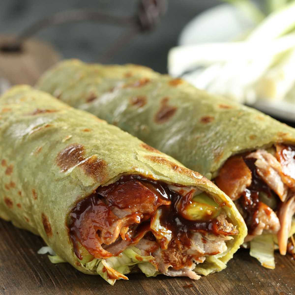 抹茶味のクレープに巻かれたジューシーな、北京ダックは新感覚で楽しめる商品です。